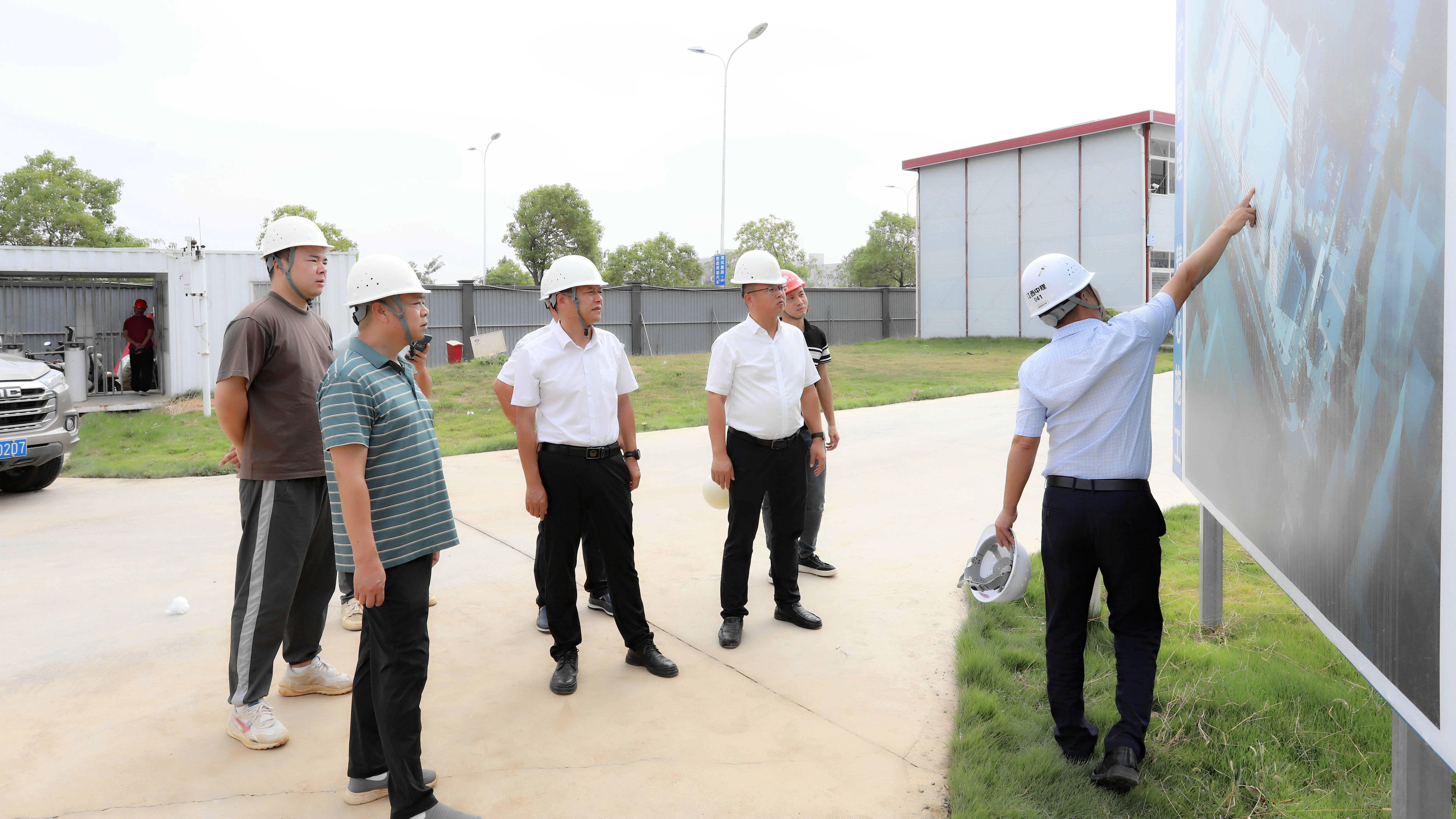 羅賢錦一行先后來到山丹路學校、機電產業園、低碳產業園、鴻儒路、天源三路、滕王閣藥業研發生產基地等項目現場,通過實地查看、現場問詢等方式,詳細了解各項目施工節點、進展、質量及安全生產情況,并提出具體要求。